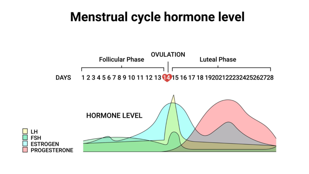 - Menstrual Phase – Hormones are low; bleeding occurs.